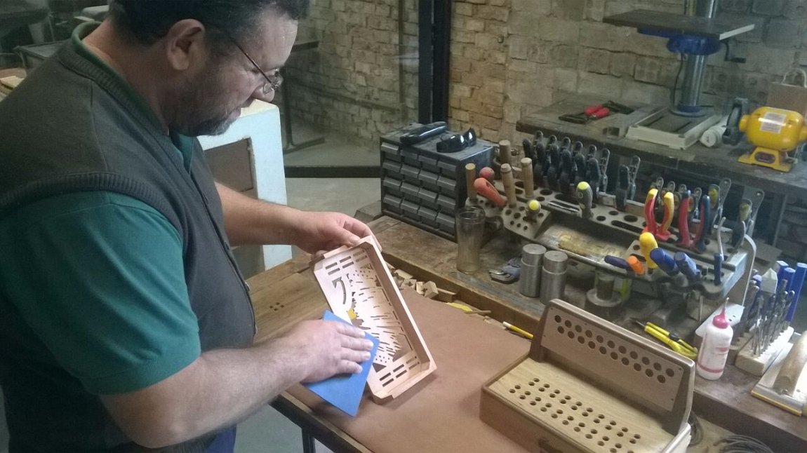 Foi preciso pesquisar para achar, no Sul da Bahia, um tipo de eucalipto cuja madeira não empena quando cortada em lâminas. Com o apoio da empresa, que banca o custo de produção das gaitas e paga os professores, as aulas puderam começar, quando a escola estadual Augusto Meyer, em Guaíba cedeu um espaço.