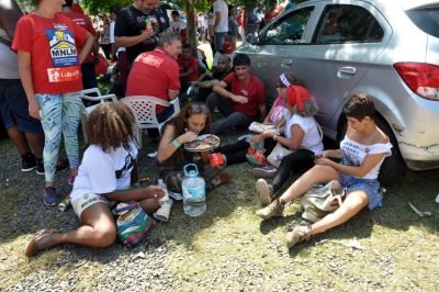 Os militantes se reuniam em torno de dois carros de som, dos grupos percussivos e dos espaços com sombra. Em um dos trios elétricos, dois trovadores da região das missões. “Lula não vai para a cadeia por causa dessa quadrilha”, atacou um. “Ele só vai ser preso se for nos braços da nossa gente”, respondeu o outro.
