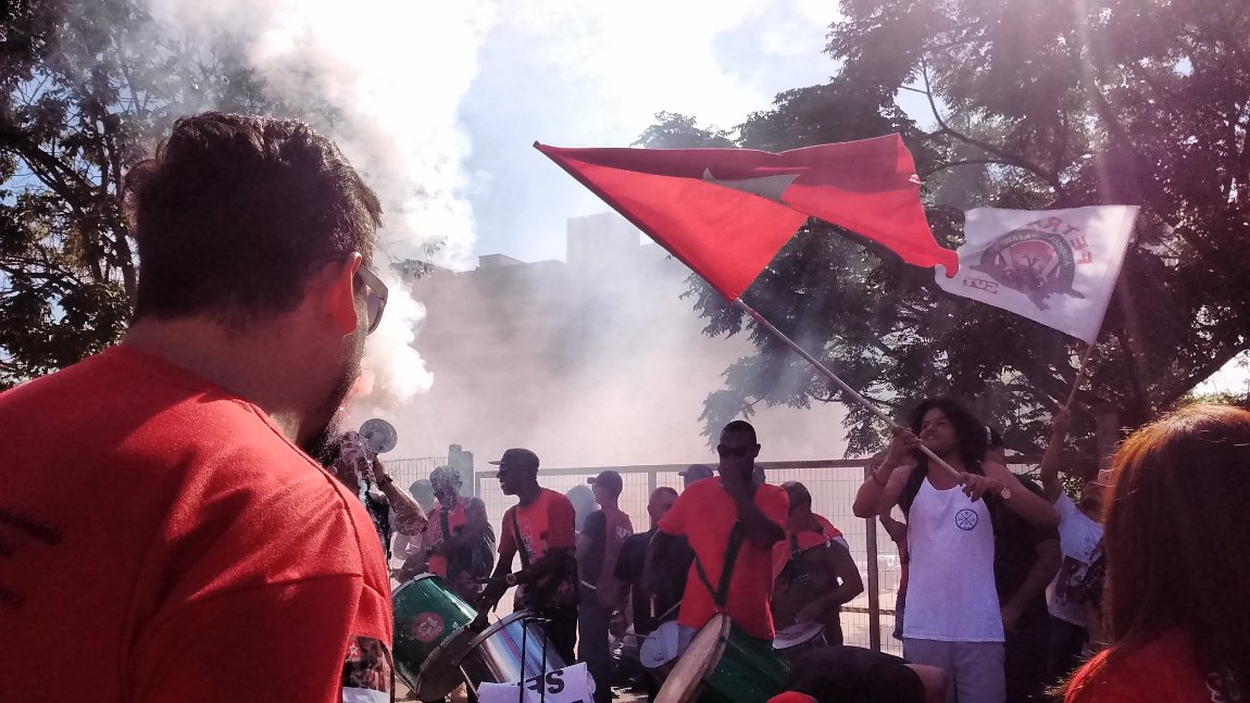 Abaixo de muita água, se ouvia um samba afinado. A bateria do núcleo Santa Margarida, do PT do Rio de Janeiro, seguia firme. “Eu sou resistência / Até o Lula assumir a presidência”.
