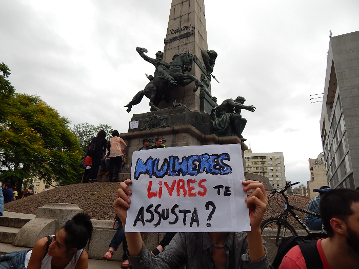 Pelo menos quinze organizações pelos direitos das mulheres, além de políticos da oposição ao governo Sartori (que extinguiu a Secretaria das Mulheres criada no governo anterior), participaram do manifesto. Pediam desde uma polícia estadual não militarizada até a cassação de Eduardo Cunha, atual presidente da Câmara dos Deputados, agora na mira da comissão de ética do Parlamento. Cunha é o autor do PL 5069/13, que dificulta o aborto legal e a venda da “pílula do dia seguinte” mesmo a vítimas de estupro. O PL foi aprovado por unanimidade na Comissão de Constituição e Justiça dia 21 de outubro. Milhares de mulheres protestaram país afora.