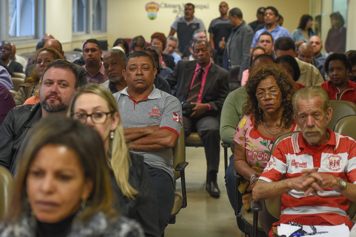 Integrantes da escola de samba lotaram a sala 301 para acompanhar a discussão. Na interdição, o MP alega que a escola não cumpriu o Termo de Ajustamento de Conduta (TAC) assinado em 2013 e que a escola só poderia realizar eventos ligados ao samba.