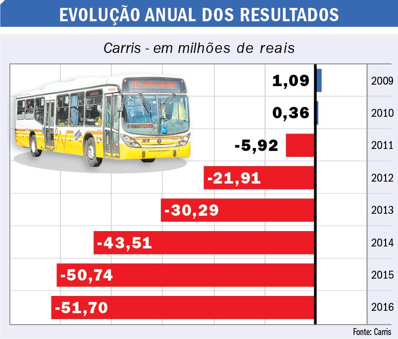 Foi no início da gestão de José Fortunati na prefeitura que a empresa começou a apresentar prejuízos. Em 2011, o prejuízo foi de quase R$ 6 milhões. Em 2012, um salto negativo: mais de R$ 21 milhões negativos. O déficit nas contas da empresa chegaram a mais de R$ 50 milhões em 2015 e 2016. Para este ano, a previsão é de resultados ainda piores.