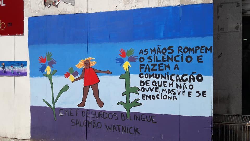 A primeira a fazer sua intervenção foi uma turma da Escola Municipal de Ensino Fundamental de Surdos Bilíngue Salomão Watnick, no dia 20 de abril.