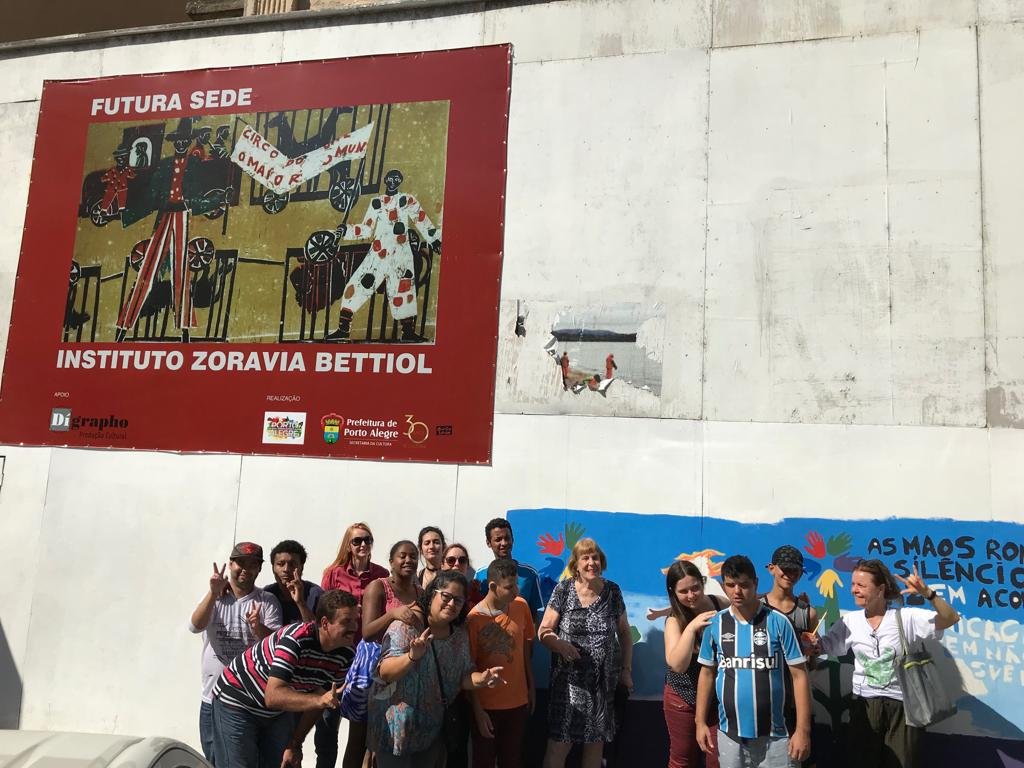 Começaram pela pintura artística do tapume as atividades o Instituto Zoravia Bettiol na sua futura sede, a Casa dos Leões, uma construção tombada e deteriorada na rua dos Andradas.