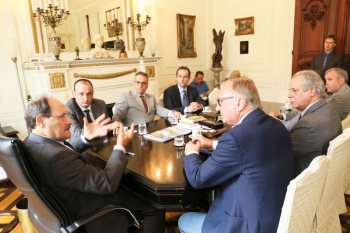 O governador José Ivo Sartori e o secretário da Coordenação de Comunicação, Cleber Benvegnú, receberam a direção da Associação Gaúcha de Emissoras de Rádio e Televisão (Agert), no final da tarde desta segunda-feira (9), no Palácio Piratini.