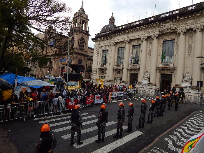 Legislativo gaúcho cercado por policiais militares/ Foto Matheus Chaparini