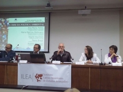 A secretária do Ambiente e Desenvolvimento Sustentável (Seades), ex-SEMA/RS, Ana Maria Pellini, e a sua adjunta, Maria Patrícia Mollmann, participaram do debate promovido pelo Instituto Latino-Americano de Estudos Avançados (ILEA-UFRGS), no dia 14, sobre “A crise da política ambiental do RS”. Presentes também os professores da UFRGS Paulo Brack, do Instituto de Biociências, e Rualdo Menegat, do Instituto de Geociências.