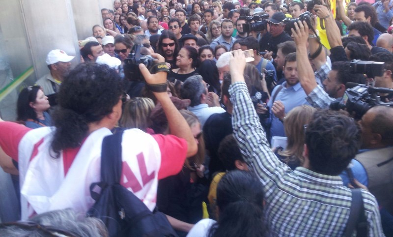 Na Duque de Caxias, deputados dos partidos de oposição ao governo discutiam os próximos passos. O deputado Altemir Tortelli (PT) comentou que não acredita em uma retirada dos projetos, que é principal reivindicação dos servidores, nem mesmo do regime de urgência.