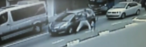 Um homem de menos de 30 anos aproveita o trânsito parado, circunda por trás de um Honda Fit, como se fosse cruzar a avenida, e aos 10 segundos da gravação se volta de repente em direção à porta da motorista. Com inesperada violência, começa a esmurrar o vidro. O carro tenta arrancar. O primeiro murro acontece aos 15 seg. Aos 16 seg, um segundo murro. Aos 17, o terceiro. Ele força a abertura da porta aos 18, que se abre no segundo seguinte.