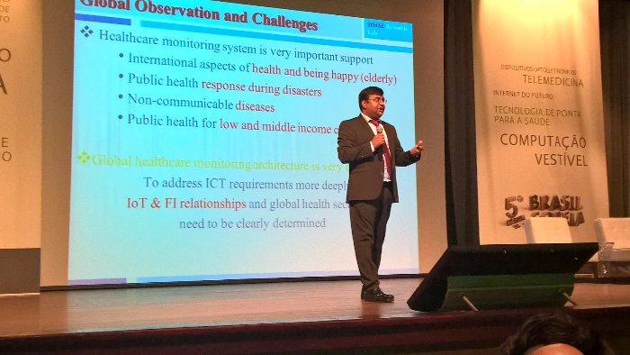 Outro palestrante do Fórum Brasil Coreia, o indiano Dhananjay Singh, presidente da Divisão Global de Tecnologia da Informação e professor assistente no Departamento de Engenharia Eletrônica da Universidade Hankuk de Estudos Estrangeiros, de Seul. Sua palestra foi sobre “Monitoramento Global de Saúde”.