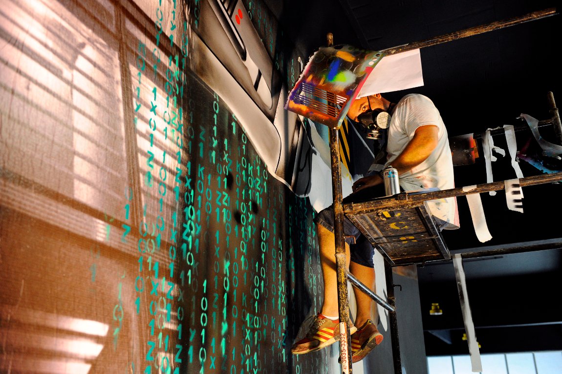 O espaço que recebe a exposição tem, na parede externa, uma obra de Xè. Em 2016, na segunda edição do evento Travessa Cultural Redenção, o artista pintou o seu personagem principal na época na fachada da Casa Musgo.