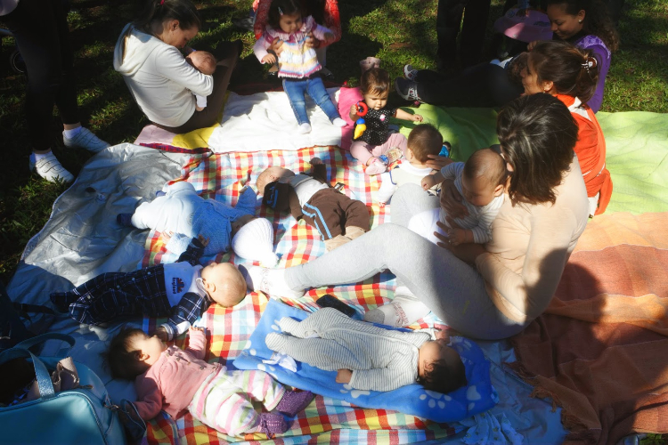 O mamaço realizado no Parcão nesse sábado contou com cerca de 20 mães, alguns pais, bebês, crianças em fase lúdica e o sol que ficou firme o tempo todo sob uma temperatura primaveril em pleno inverno.
