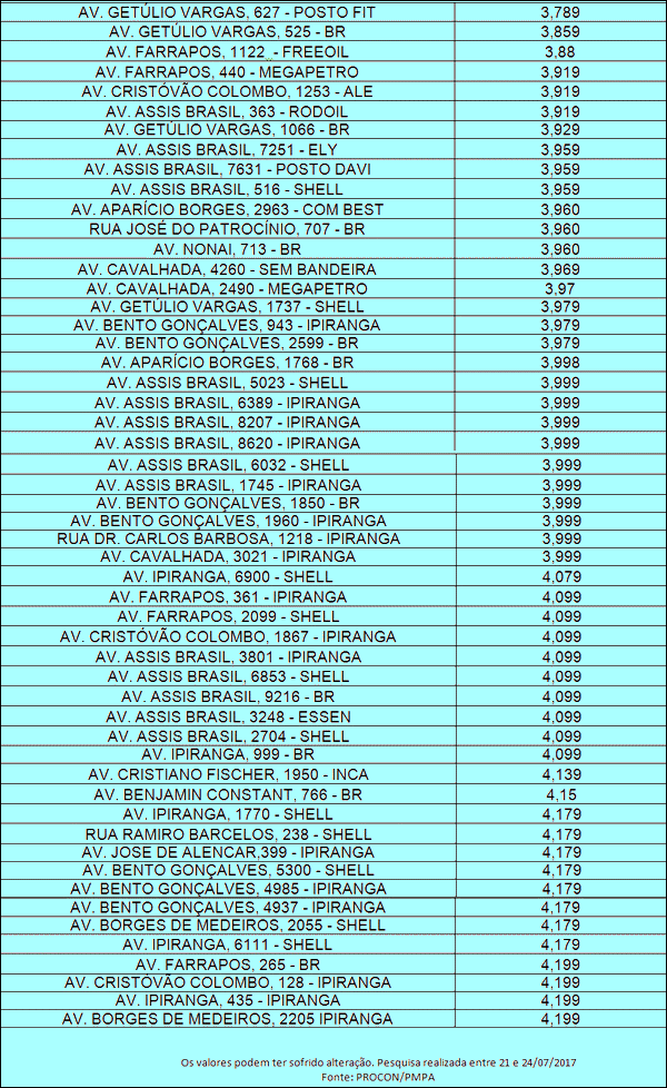 2 respostas para “Procon divulga ranking de preços da gasolina em 53 postos de Porto Alegre”