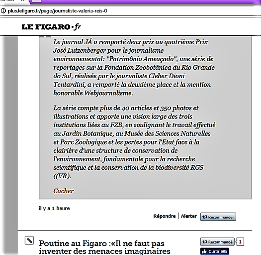 “Patrimônio Ameaçado”, série de reportagens sobre a Fundação Zoobotânica do Rio Grande do Sul, publicadas pelo jornal JÁ, e vencedora do 4º Prêmio José Lutzenberger de Jornalismo Ambiental, ganhou repercussão nos jornais da Europa.