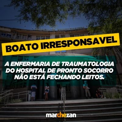 Marchezan Júnior usou suas redes sociais para falar que os fechamentos de leitos no HPS são boatos. Mais uma prova que de que não tem vergonha nenhuma em mentir para população. Segundo servidores do HPS, o fechamento de 21 leitos foram confirmados: 11 na traumatologia, 2 na UTI e o resto dividido nas outras unidades. Fora isso, o caos no atendimento se intensifica com apenas DOIS funcionários(as) para cerca de 40 pacientes. Prefeito, mentira ? tem perna curta.