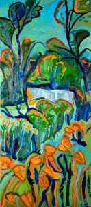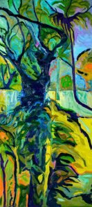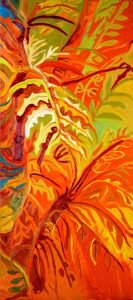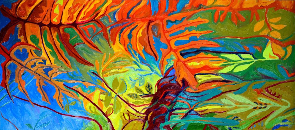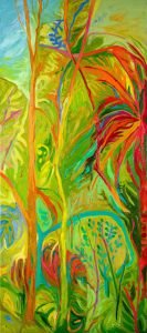 O painel é composto por 20 telas de 0,80 m de largura (e 1m80 de altura), montadas lado a lado numa grande panorâmica. “Habitadas por uma profusão de formas vegetais, em uma paleta vívida e exuberante, as pinturas parecem exibir, progressivamente, um adensamento da experiência, como se fosse possível tatear a superfície das plantas, acompanhar o transporte da seiva, sentir a absorção das raízes, pulsar no ritmo da mata”, comenta a curadora, também professora do Instituto de Artes da Universidade Federal do Rio Grande do Sul (IA/UFRGS), no texto de apresentação da mostra.