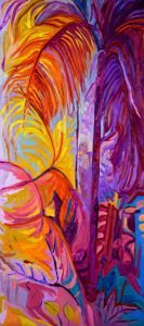 O insight que levou Bea a produzir as telas a óleo do painel revelou-se ao visitar sua filha, que mora no pé da Mata Atlântica na praia do Campeche. “Sempre tive ligação com a natureza. Cheguei lá, sentei-me fora da casa, olhei a paisagem e vi aquela mata imensa. Pensei: ‘Isso daria um quadro enorme’. Fiz mais de 40 fotos e ao retornar para casa comecei a pintar”, conta a reconhecida artista, que em breve fará 79 anos, dos quais mais de 60 dedicados ao ofício que abraçou depois de cursar Belas Artes na Universidade de Passo Fundo.