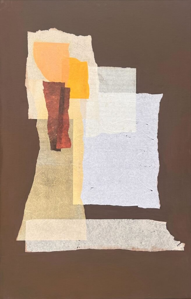 O resultado é um híbrido entre pintura e colagem que provoca uma dupla percepção: de longe, as obras revelam composições abstratas de grande força visual; de perto, a materialidade dos papéis — suas dobras, fibras e histórias — emerge com toda a sua presença física reveladas na superfície. É um convite para pensarmos em consciência ambiental e transformação.