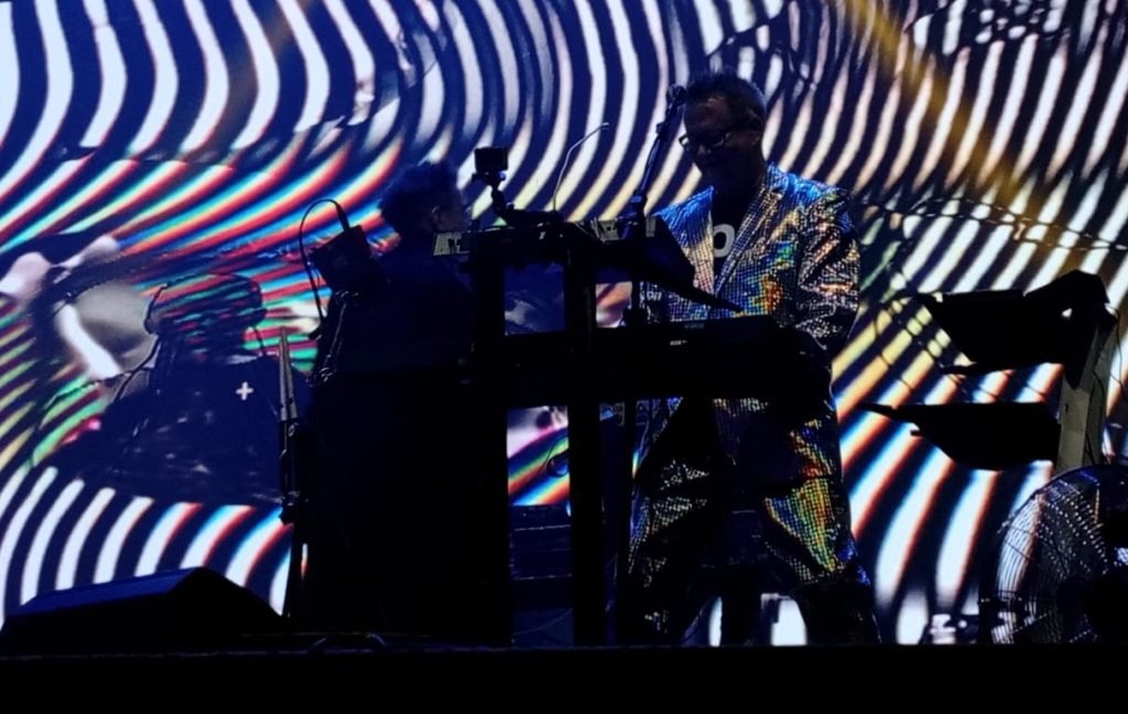 A banda é conhecida por permear ora no adverso, ora nas referências. O fundo de sua performance, ultra colorido, formando recortes e enfatizando releituras e mudanças estéticas do tipo 8 bits (ou um cartuxo de videogame mal colocado), trazia todo tipo de movimento que se possa imaginar, criando colagens em cores tipo Keith Haring; tudo isso na melhor estética retrô-cideral, onde a referência Star Trek vem do sample do Dr Spock falando “Pure Energy” em “Whats on Your Mind”, um dos primeiros hits da banda e o bis obrigatório.