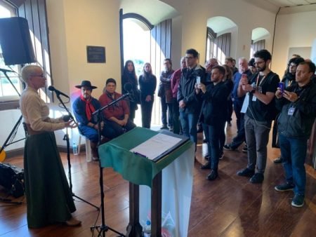 A Secretária de Estado da Cultura, Beatriz Araujo, abriu a exposição. Foto: Solange Brum | Ascom Sedac “Esta casa é um templo das virtudes cívicas do gaúcho”, disse o historiador Miguel do Espírito Santo, diretor do Instituto Histórico, parceiro do evento,