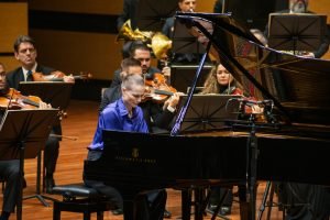 Em seguida, a pianista Anastasiya Evsina sobe ao palco da OSPA para interpretar “Rhapsody in Blue”. A obra-prima de George Gershwin construiu uma ponte entre as salas de concerto e os bares de jazz. Entretanto, Anastasiya pontua que a obra às vezes recebe críticas nos dois contextos: “Músicos de jazz frequentemente argumentam que ela não representa o verdadeiro jazz, devido à sua natureza escrita. Por outro lado, músicos clássicos reconhecem seu estilo como jazz, embora muitos críticos sustentem que eles falham em executá-la adequadamente”. Na visão da pianista, Gershwin criou uma obra que funde a expressividade do jazz com a estrutura da música clássica. “Para interpretá-la, é essencial ter sensibilidade ao jazz”, afirma Anastasiya.