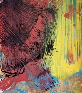 Obra: Palla 180X160 -2023 Paulo Amaral explica que o nome Gestuale II foi escolhido para essa exposição por ser um seguimento da recentemente realizada em Cascais e por denotar o amplo gesto que caracteriza as produções do artista. “Seu estilo revela o pintor intuitivo, de pinceladas gestuais fortes, harmônicas, ricas em volume e cores”, complementa.