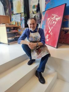 Obra ; Dantesco 150X140 – 2022. Marcelo Zanini mergulhou na pesquisa do expressionismo abstrato na década de 90, participando de exposições no Brasil e no exterior. Ele concilia o trabalho médico com a pintura e fez de sua clínica uma verdadeira galeria de arte, que também abre espaço para o amplo estúdio onde produz suas obras. “Na medicina eu trabalho com precisão milimétrica, mas na arte abstrata eu exerço a liberdade nos gestos e na profusão de cores”, revela Zanini.