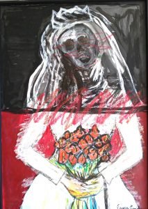 Por outra perspectiva, a artista Marina Menezes se vê envolvida na história de sua “musa”, e parte em busca de uma imagem que possa contar sua história de coragem e personalidade única. Na exposição, Marina revela suas descobertas e pesquisas em fotografia, uma das técnicas que desenvolve, ao lado das montagens, desenho, pintura e decupagem.
