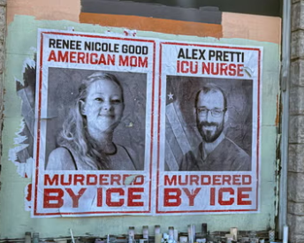 A truculência da caçada aos imigrantes ilegais já resultou na morte de dois cidadãos americanos, Alex Pretti e Renee Good, em Minneapolis. Cartazes com suas fotos estão espalhados pelos muros da cidade.
