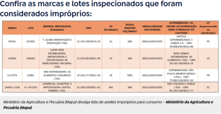 As amostras coletadas pelo departamento foram analisadas pelos Laboratórios Federais de Defesa Agropecuária que confirmaram a presença de outros tipos de óleos vegetais na composição, o que caracteriza fraude.